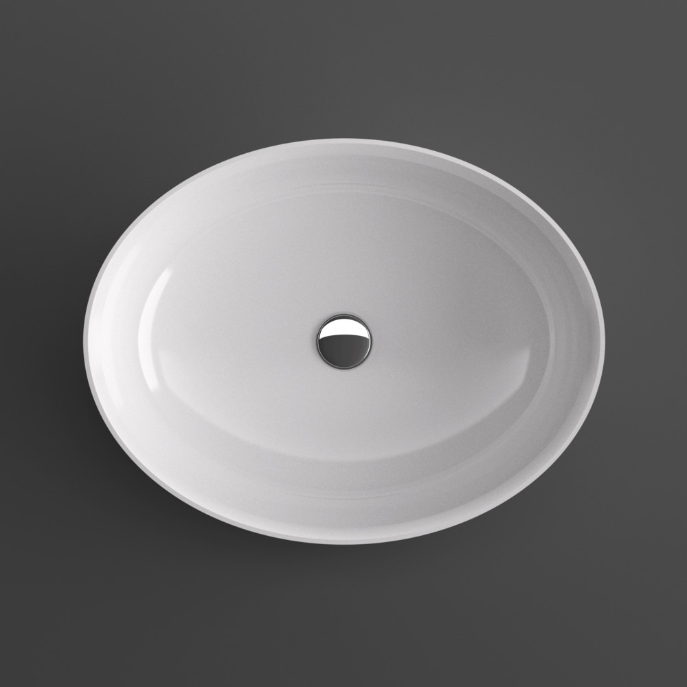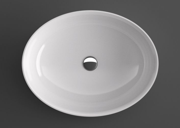 Das Aufsatzwaschbecken 661 wird hergestellt aus weißem Ceramilux®. Einem modernen und widerstandsfähigen Kompositmaterial in glänzender oder matter Oberfläche. Das ovale Waschbecken 661 glänzt in seiner schlichten und schmalen Form.