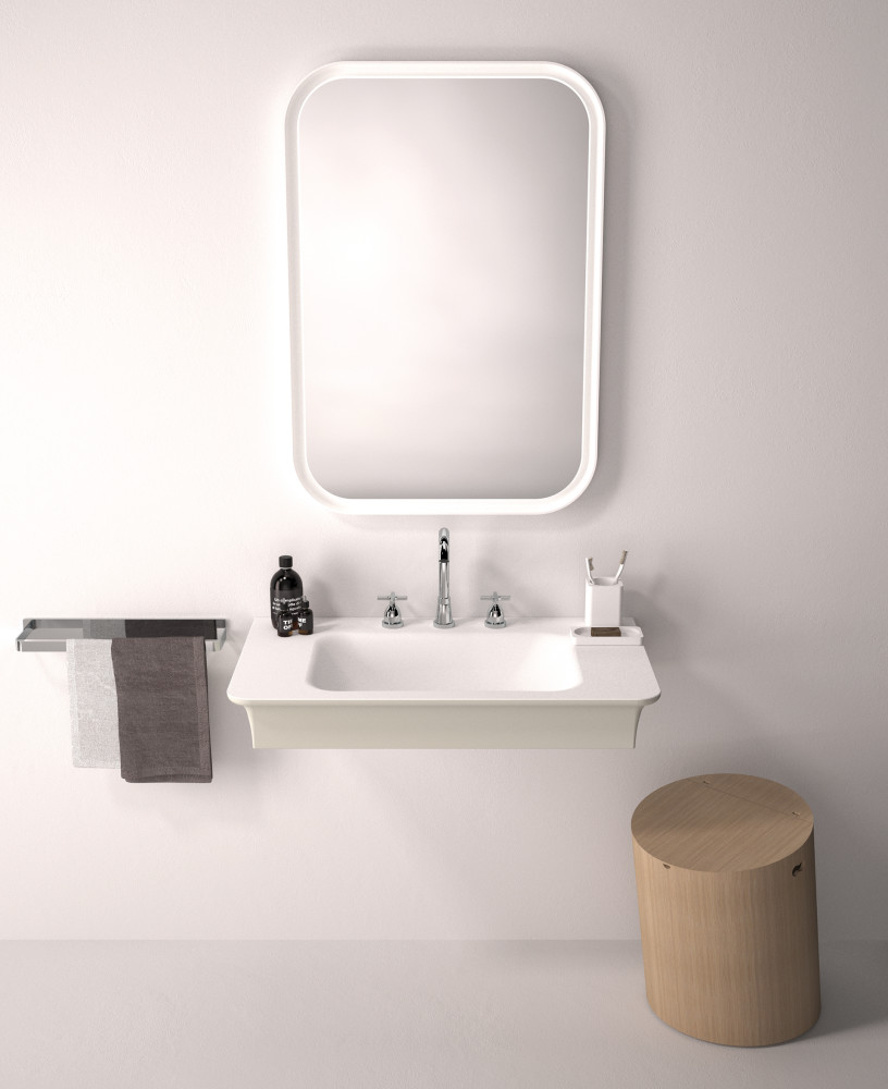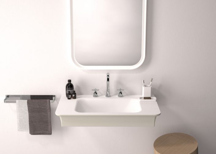 Die markanten, geschwungenen Linien des Novecento-Waschtisches wurden um die neue Novecento XL-Version erweitert. Der Novecento XL ist aus glänzend weißem oder mattem Ceramilux ® oder in zweifarbig lieferbar. Die Außenseite kann in einer matt grauen Lackierung bestellt werden. Der 90cm breite Waschtisch bietet ausreichend Platz auf beiden Seiten. Erhältlich als freihängendes Wandmodell oder auf einem Gestell aus poliertem Edelstahl oder grau lackiert. Becken und Struktur sind auch in kundenspezifischen Farbtönen erhältlich.
