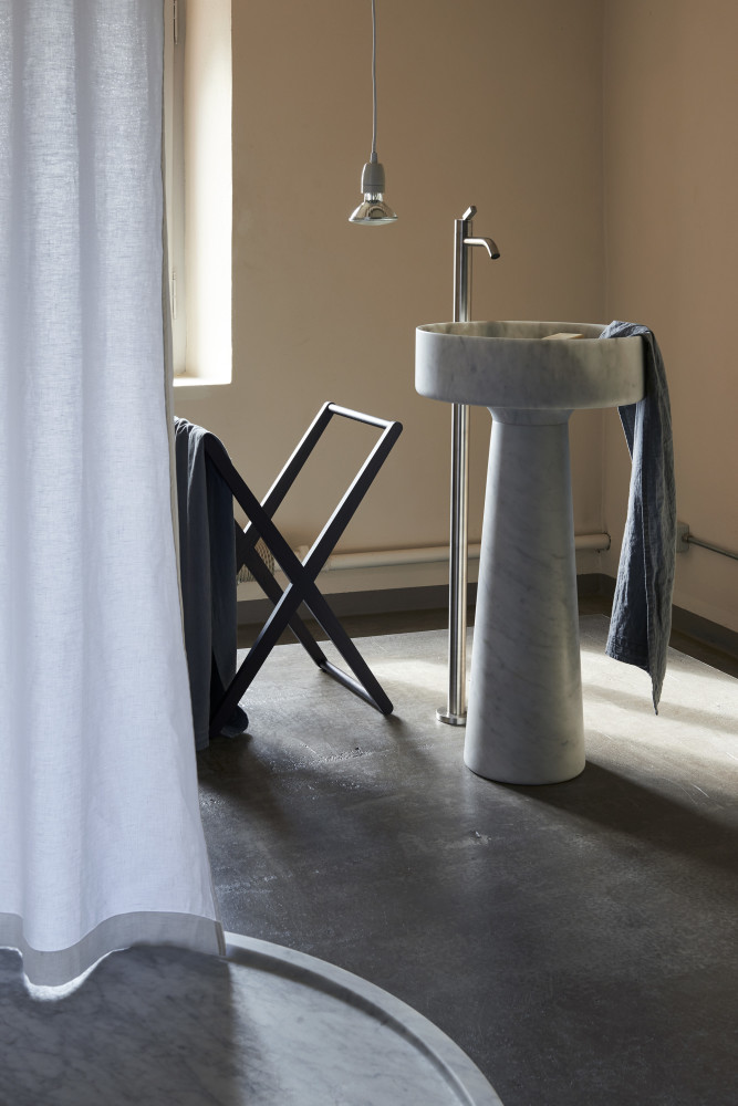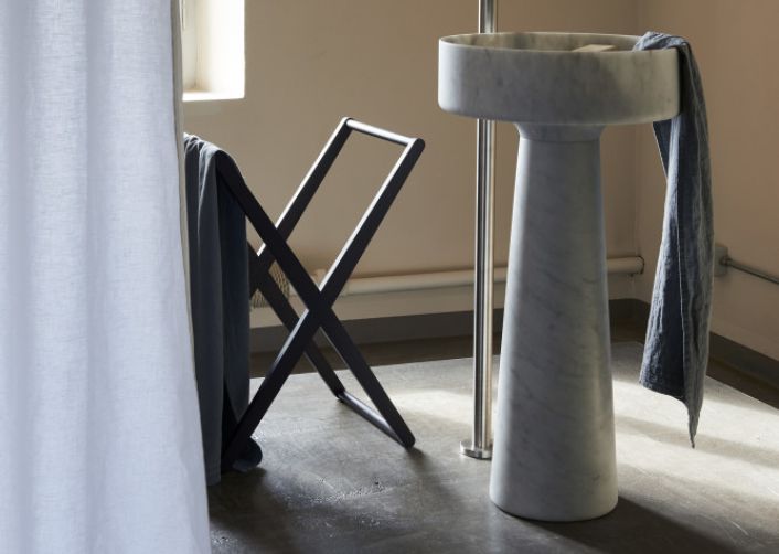 Die Bjhon Kollektion ist das Ergebnis einer Idee von Angelo Mangiarotti aus dem Jahr 1970. Sie sind aus Marmor oder aus anderen Steinarten sowie in Cristalplant® biobasiert erhältlich. Die kegelstumpfförmige Säule kann zwei verschiedene Formen des Beckens tragen und ein skulpturales Stück schaffen. Alternativ kann das Becken auf Waschtischplatten der Flat XL Serie als Aufsatzbecken positioniert werden. Das Bjhon kann individuell platziert werden, dank des in der Säule integrierten Abflusses. Es fügt sich nahtlos in unzählige verschiedene Stile und Einstellungen ein, sowohl in beiden Versionen des Becken als auch in der Materialwahl: von der Reinheit des Marmors bis hin zu schön geäderten Steinen.