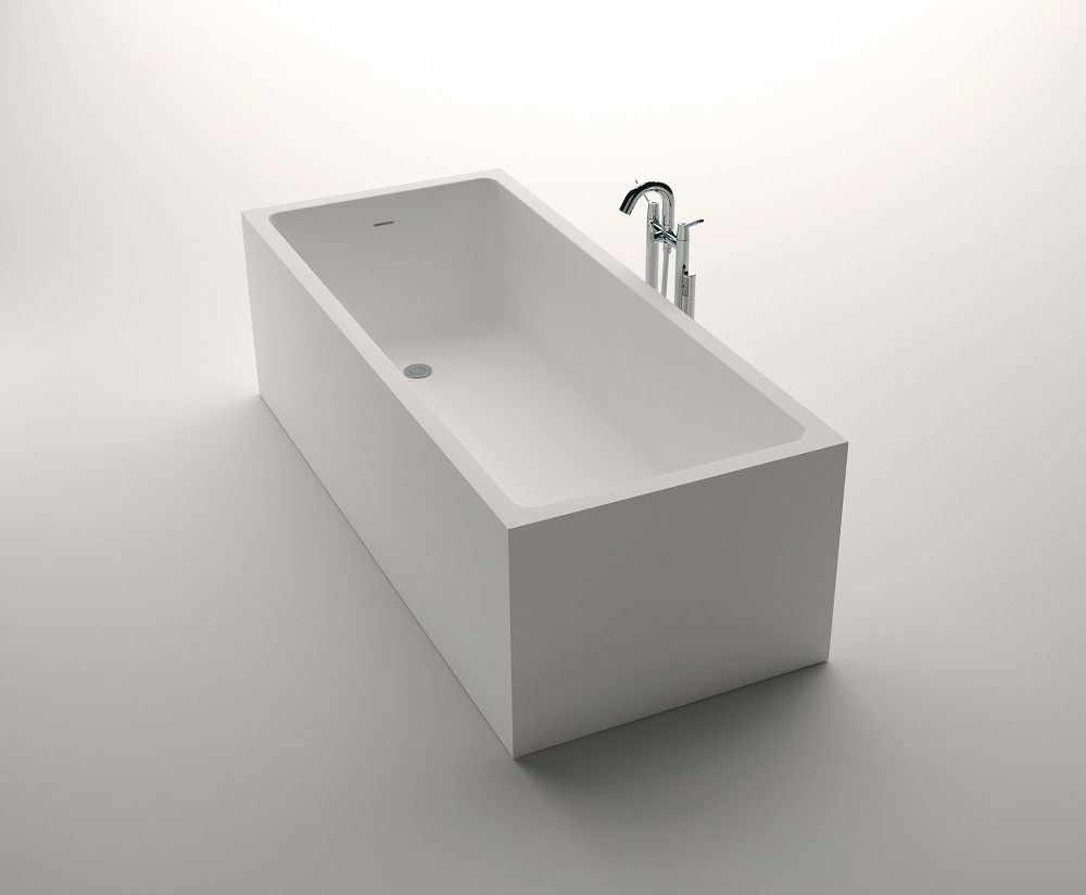 Rationalität und Vielseitigkeit verschmelzen in der Badewanne Cartesio. Eine rechteckige Badewanne aus weißem Cristalplant®; erhältlich in vielen Versionen: als freistehende, Eck-, Wand- oder Nischenversion. Durch Veränderung der Größe in der Breite und Länge, kann z.B. ein Regal oder ein breiterer Rand für eine Wannenrandarmatur geschaffen werden.