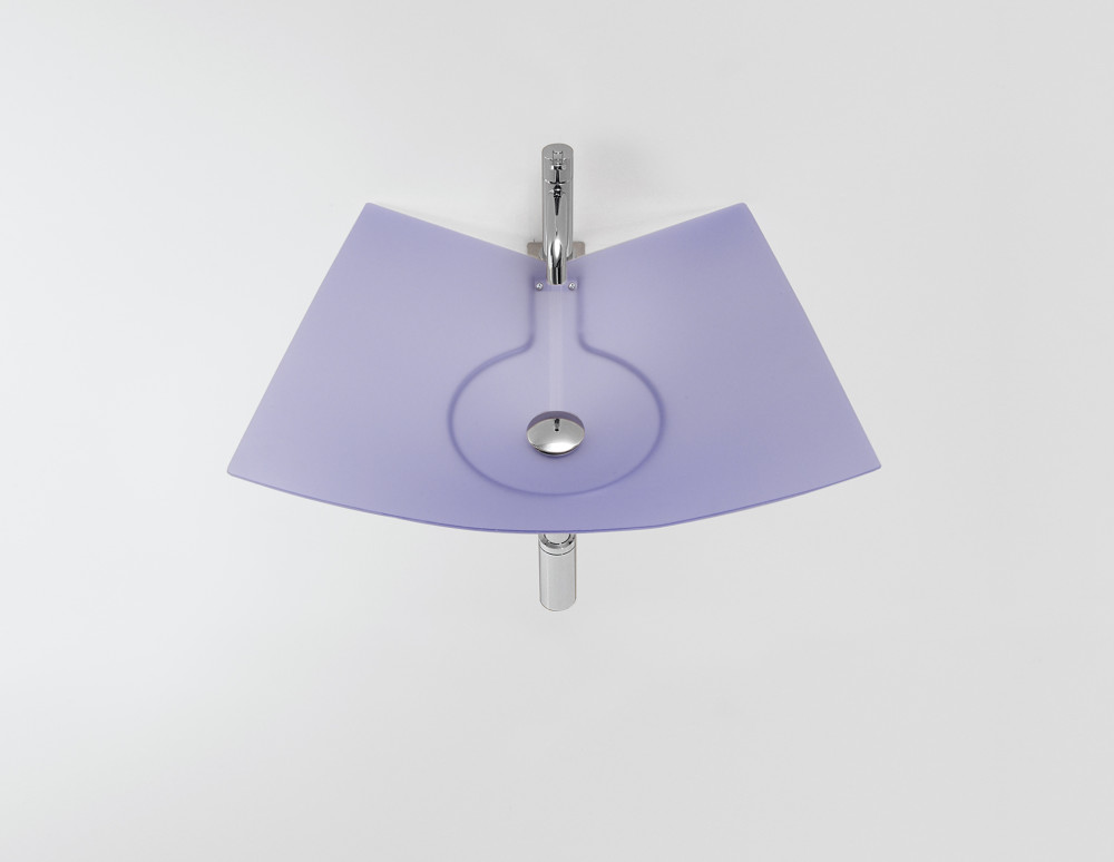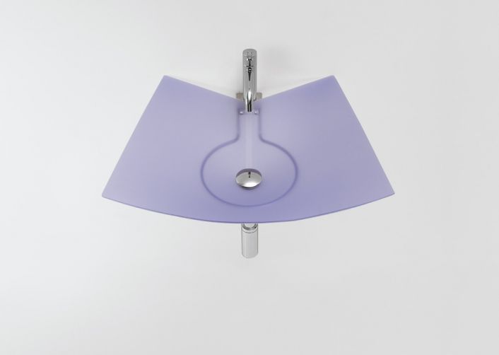Waschbecken Foglio aus flexiblem undurchsichtigem PVC. Erhältlich in drei Größen und vier Farben: Orange, Grün, Violett und Grau. Unterstützt von einer Edelstahlkonstruktion.