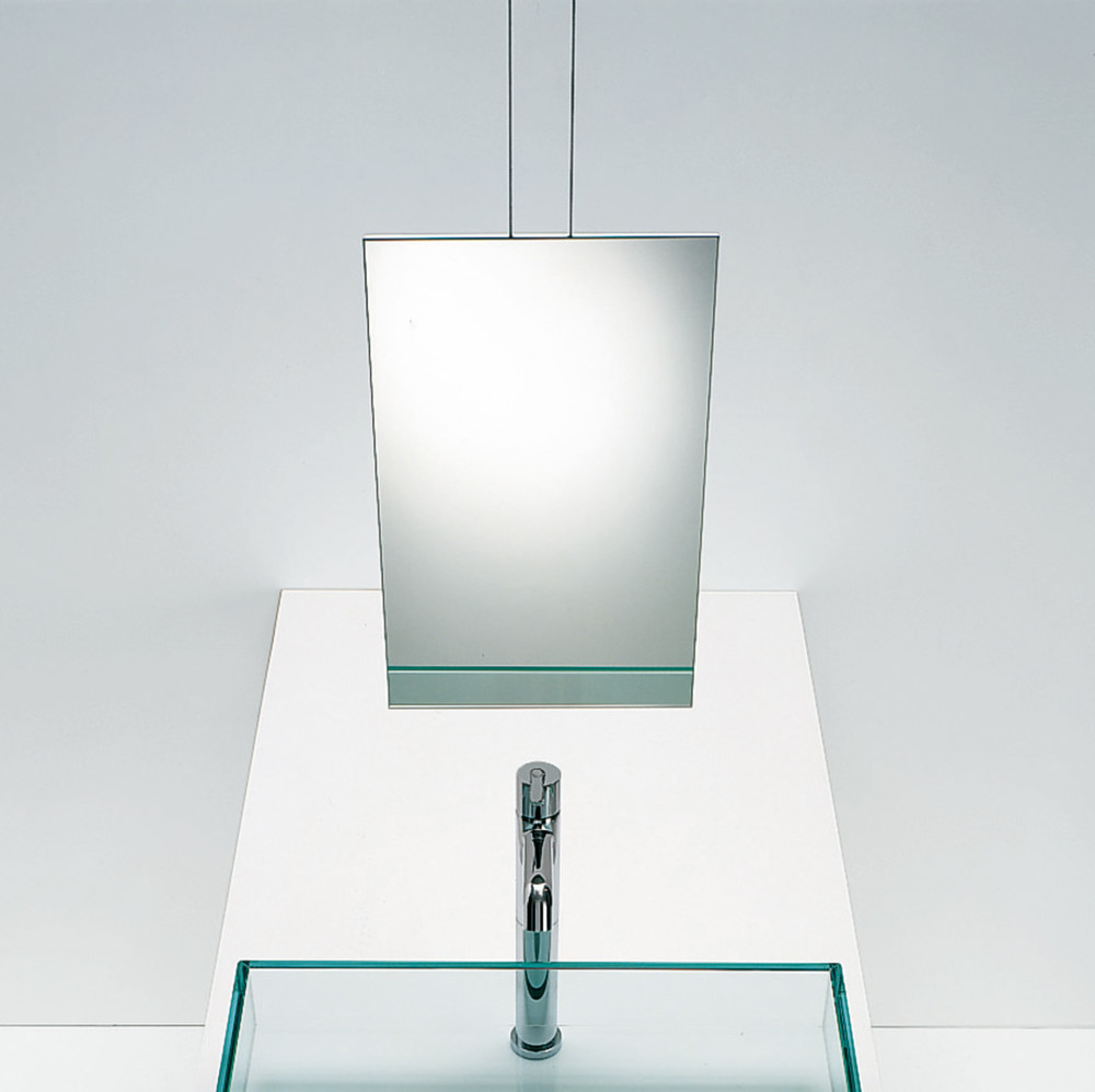 Hängespiegel MINUETTO zur Deckenmontage mit zwei Drahtseilen und Befestigungsdübeln, Rückseite aus weißem CORIAN®