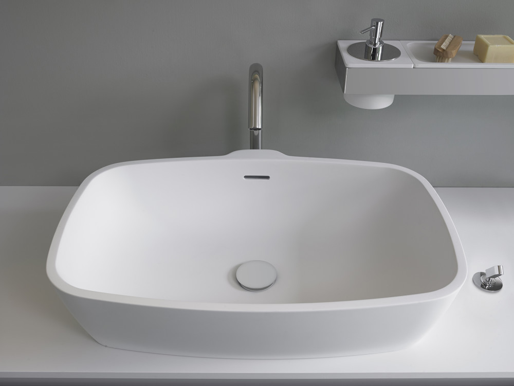 Ein großes und einladendes Becken, mit einem filigranen Rand. Eine reine und einfache Form für ein Badezimmer, das auf einer raffinierten und natürlichen Einfachheit basiert. Aus weißem Cristalplant® biobasiert, ist das Normal Handwaschbecken für endlose Kompositionen geeignet. Kombinierbar mit den Waschtischablagen der Flat XL- und der Evoluzione Serie. Ergänzt wird die Serie durch die gleichnamige Badewanne für einen einheitlichen Look.
