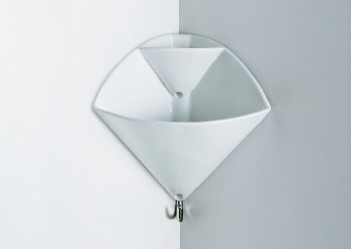 Weißes Keramik-Eckregal für Duschen. Abnehmbar für eine einfache Reinigung.