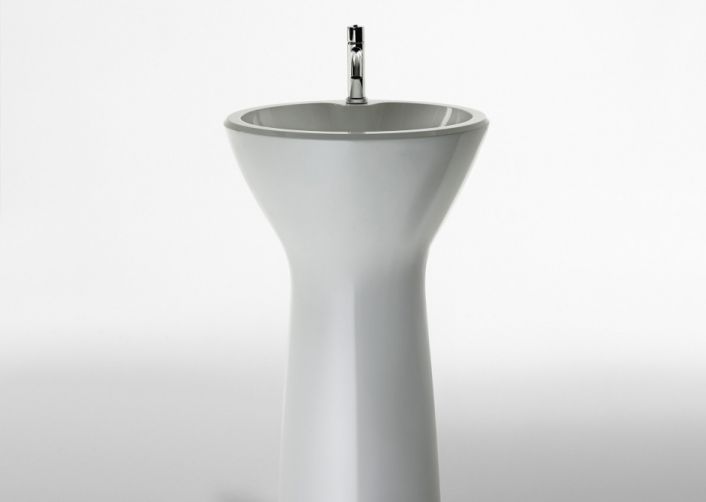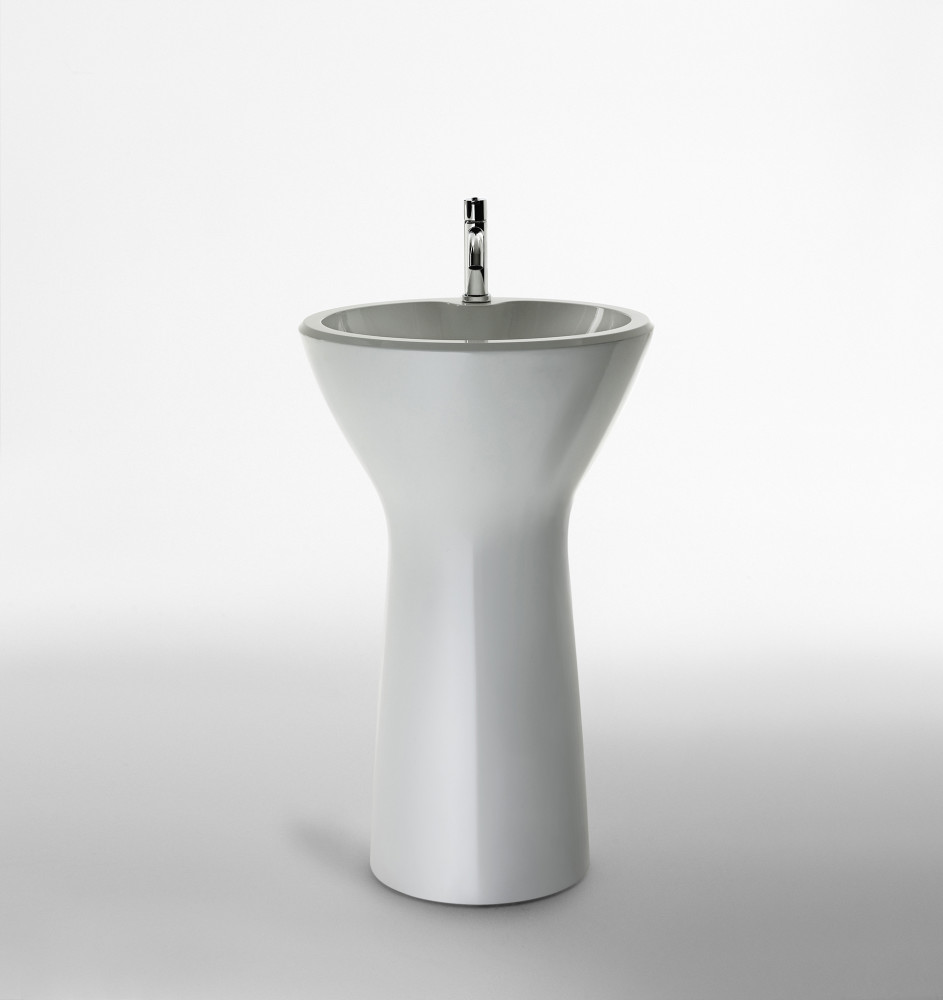 Das freistehende Roto Waschbecken hat eine markante, aber ausgewogene Kelchform. Aus Polyethylen in Weiß, Orange, Grün oder Grau in glänzender Ausführung. Das verwendete Material und die Rotomoulding-Technologie ermöglichen es, das Waschbecken aus einem Stück zu formen, was die Reinheit seiner Linien unterstreicht. 55,2 x 90h x 47,6 cm