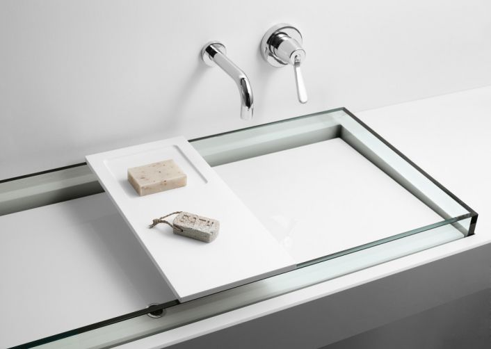 besteht aus weißer fester matter Oberfläche, verfügbar als Seifenschale / Mehrzweck-Schalen oder auch als Seifenspender; kann auf Waschtischablagen platziert werden.